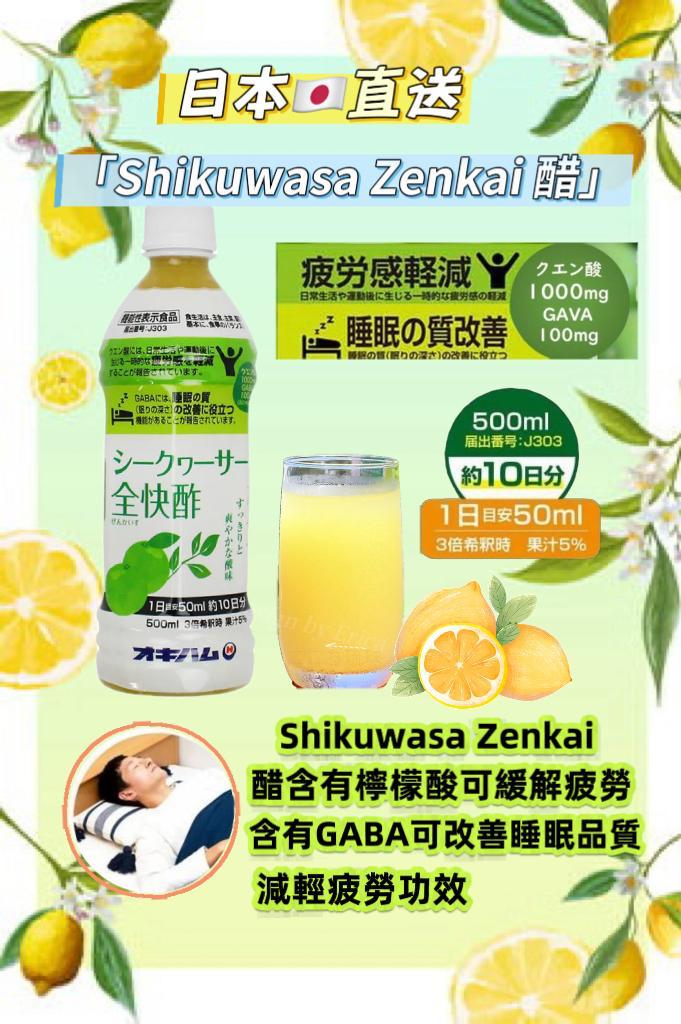 「Shikuwasa Zenkai 醋」含有檸檬酸,可緩解疲勞;還含有 GABA,可改善睡眠品質。它添加了清爽香氣的“本部柑橘醋”,以及源自泡盛的“醴醋”和“水果醋”,賦予其果香濃鬱、清爽酸度的口感,讓您以美味的方式享受健康食材。