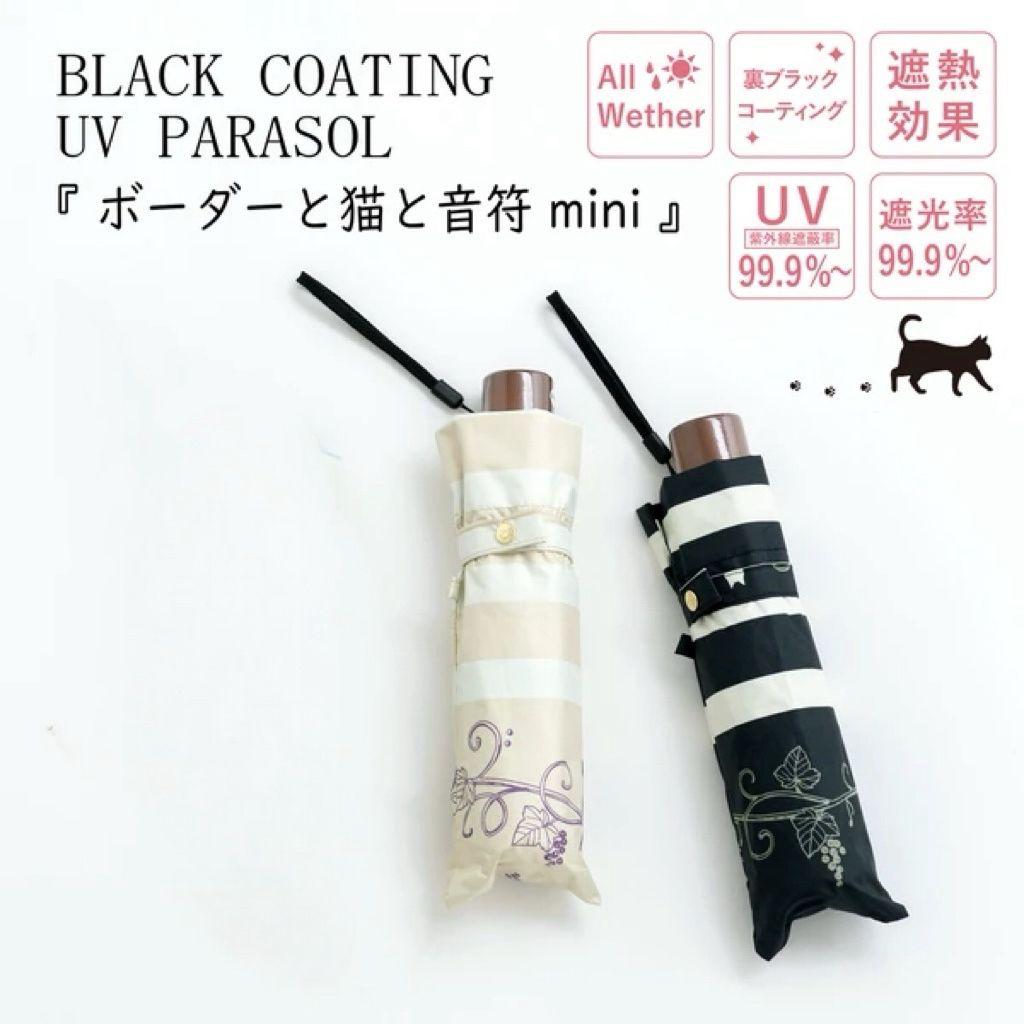 條紋和貓和音符 mini黑色塗層晴雨兼用傘 50cm (27/2截 預計3月下旬)