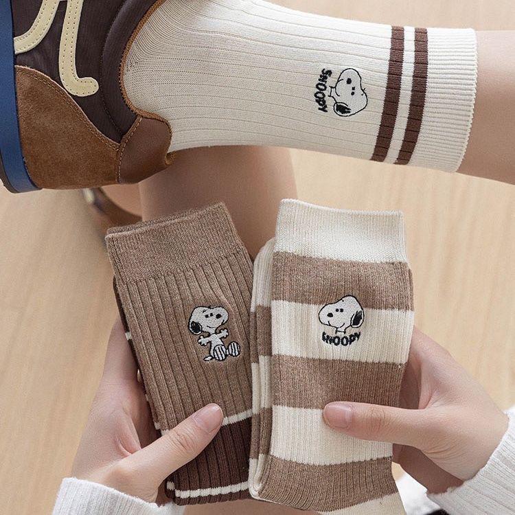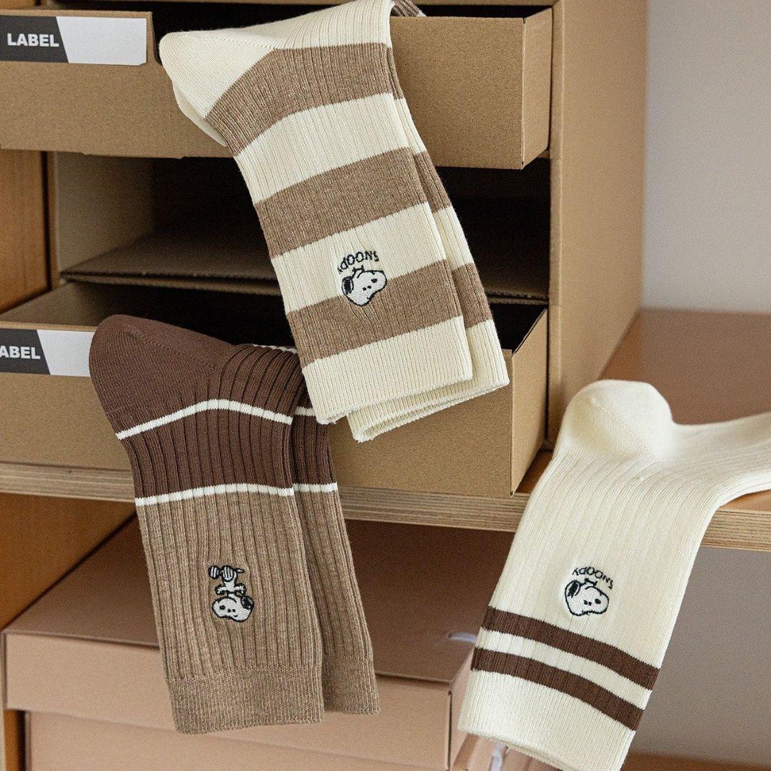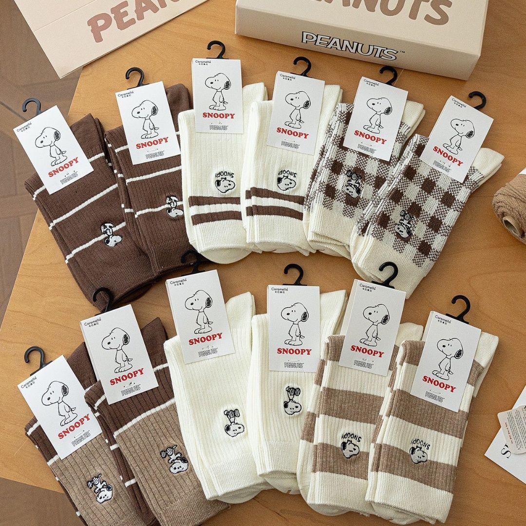 韓國🇰🇷東大門熱賣💯Snoopy Mocha Tone中筒襪(一套6對各1)