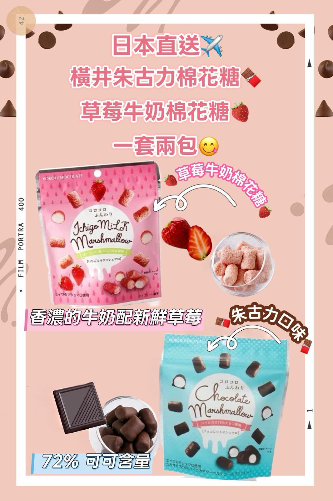 批發價-橫井朱古力棉花糖/草莓牛奶棉花糖(一套兩包,2味各一) (11/3截 預計3月尾)