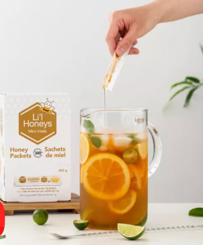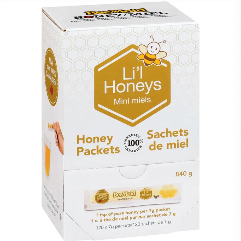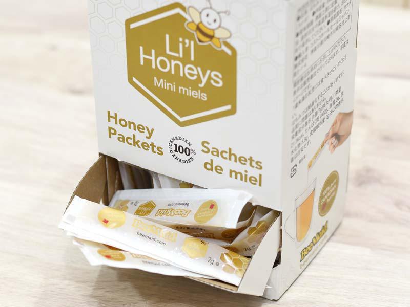 每包(7 克) Little Honeys 僅含有來自BeeMaid 的100% 純加拿大蜂蜜。