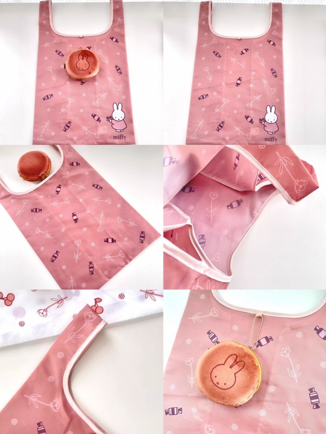 實用印花款,上面麵包造型Miffy圖案,萌趣卡哇伊〜包邊設計,很厚實,質量很好做日常手拎袋,收納袋,購物袋等都很!做logo彈力綁帶設計,可折疊收納,攜帶方便😍超級推薦!! SHOPPING無難度