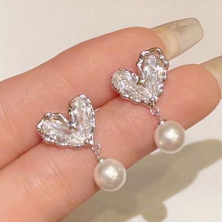 韓國新款不規則心型珍珠耳環